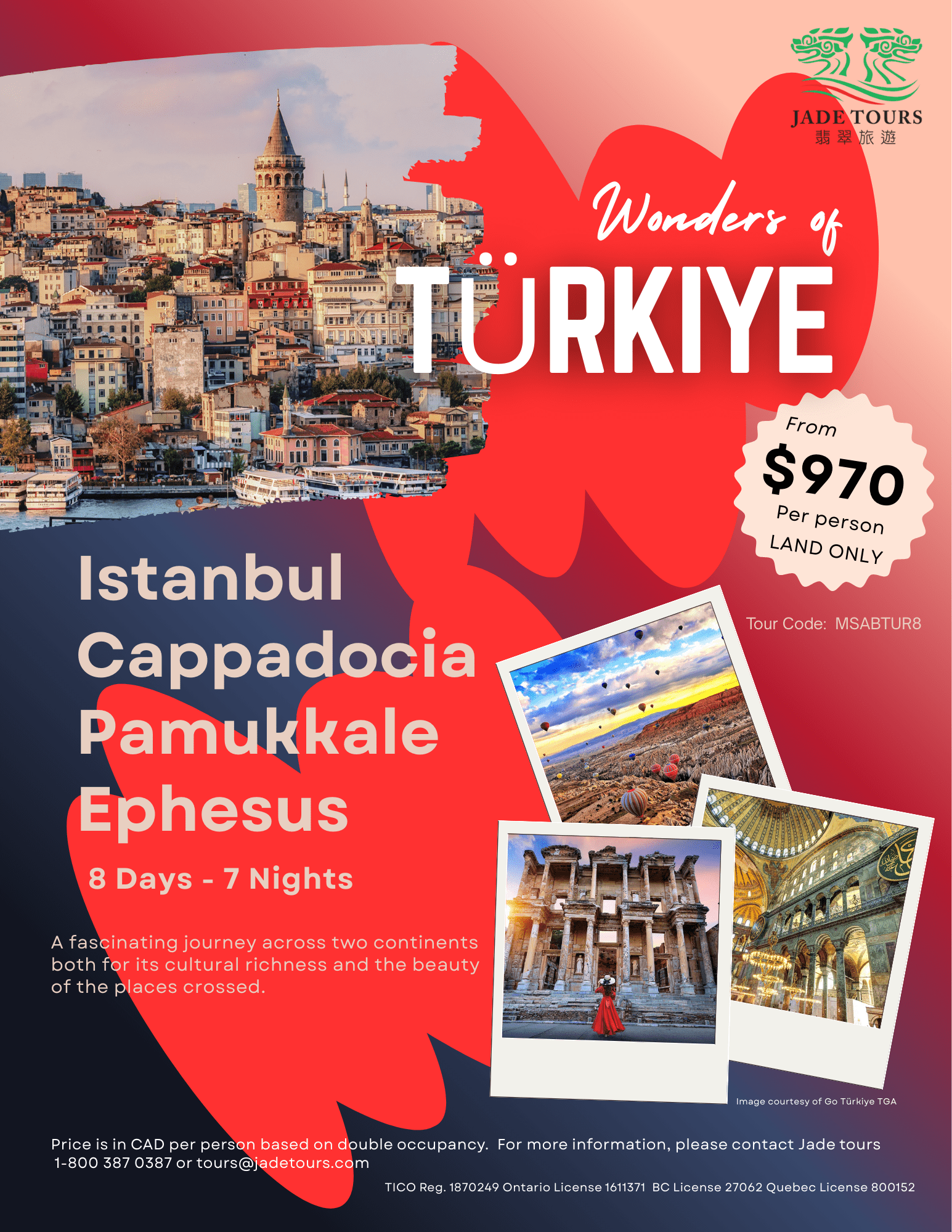 | Hot air balloon In Cappadocia | CAD630 per person |